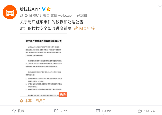 我们经常说,面对洪水猛兽般的公众情绪,企业在做危机公关时,需要管理或疏导公众情绪,从这个角度来看,货拉拉做得还不错。