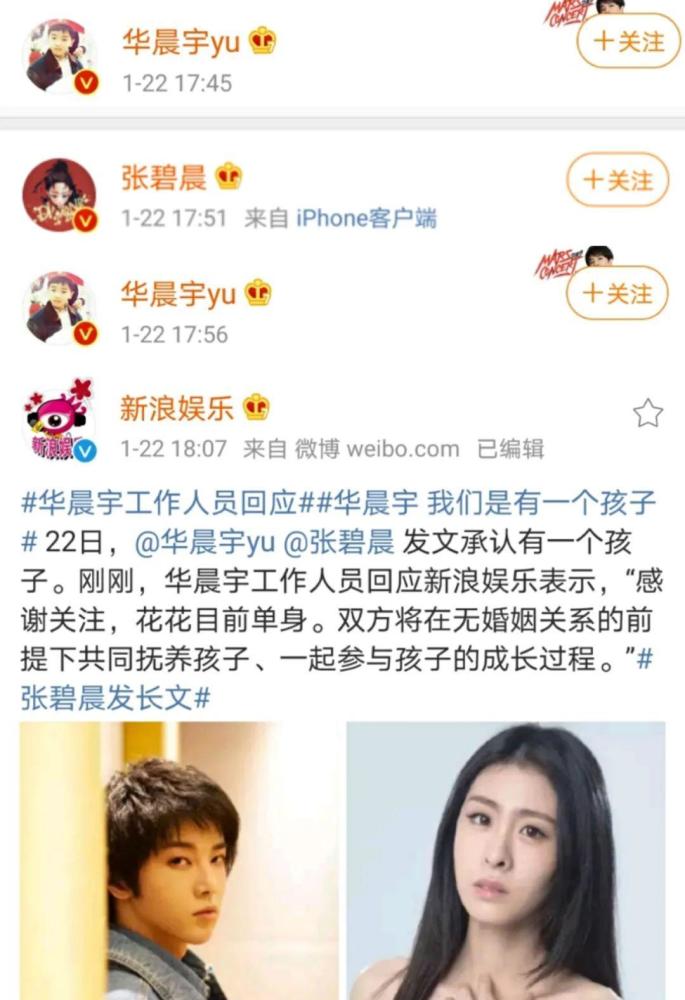 又过了11分钟,华晨宇工作人员接最后一棒,告诉大家双方将在不结婚的前提下共同抚养孩子。
