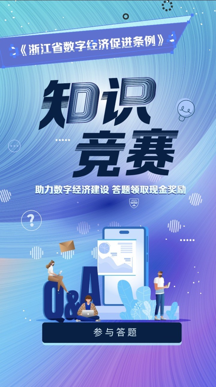 9月17日-9月26日,由浙江省经信厅、浙江省司法厅、浙江省普法办联合主办,天目新闻客户端承办推出《浙江省数字经济促进条例》知识竞赛将如期举行。新颖有趣的答题活动让书面上的法规变成了生活中的片段,带你感受在身边的数字经济。
