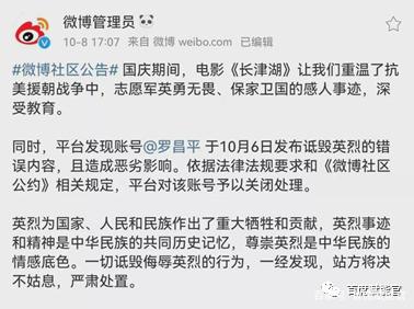2021年国庆假期最热门的话题当属反映抗美援朝的影片《长津湖》,然而,10月6号,前媒体工作者、拥有200多万粉丝的“大V”罗某平,却在个人社交账号发布质疑抗美援朝的言论。