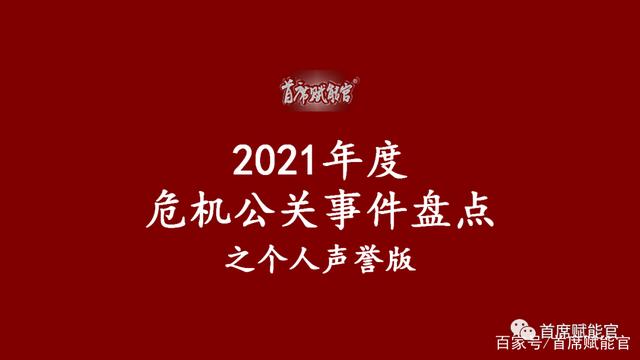 今天首先向大家呈现的是首席赋能官2021年度危机公关案例盘点之“个人声誉”篇,由首席赋能官+PREP训练营成员余蕾女士、朱蓉女士根据公开资料整理完成,【赋能简评】由首席赋能官主理人王兵最终审订。