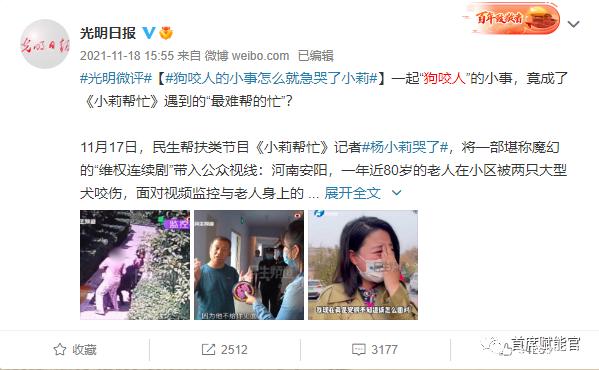 2021年9月-11月期间,河南广播电视台民生频道《小莉帮忙》栏目就同一个事先后做了10期报道。事件起因是9月河南安阳一位八旬老人在小区遛弯时被两条大型犬咬伤,整个过程有监控视频可查,但狗主人却一直拒不承认。