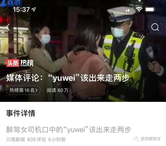 事件受到广泛关注和讨论而冲上热搜。网友们纷纷猜测,该女子口中的“yu wei”是何方神圣,其中有部分网友通过公开信息查到南昌当地公安机关某位干部的名字读音为“yu wei”而让事件的热度进一步拉升。