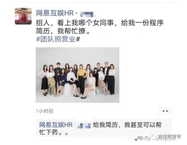 2021年5月27日,一张截图在朋友圈、微信群和多个社交媒体传播并引发热议。该截图显示,一位疑似为某互联网公司HR在自己的微信朋友圈发布求推荐简历的配图内容:“看上我哪个女同事,给我一份简历,我帮忙撩”,在该条内容的评论中,这位HR又跟着发了一条评论:“给我简历,我甚至可以帮忙下药”。