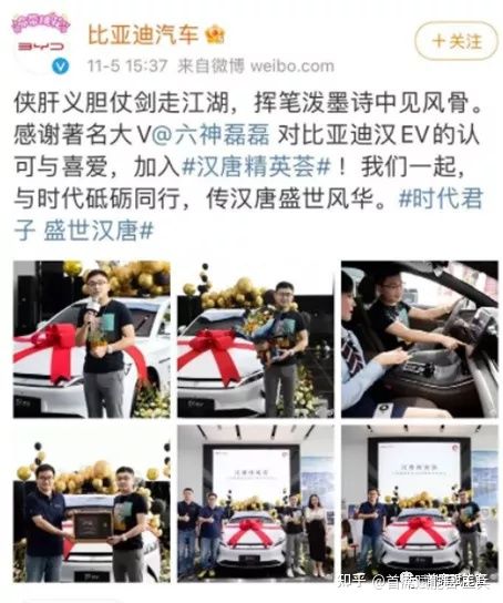 【事件梗概】2021年11月5日,比亚迪汽车通过微博宣布“六神磊磊”加入汉唐精英荟,并感谢著名大V对比亚迪汉EV的认可和喜爱。