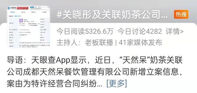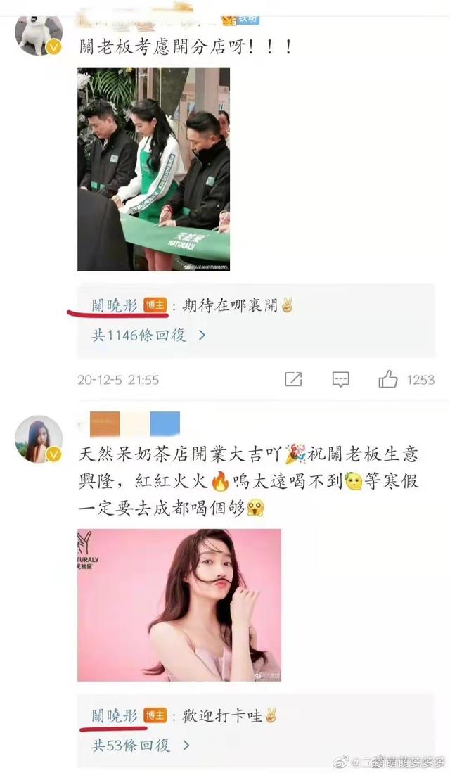 从网友所爆出的截图来看,关晓彤作为“天然呆”的代言人,不仅通过多种渠道为奶茶店宣传,还担任了其名誉店长,天然呆奶茶店日夜播放关晓彤的MV,关晓彤的父亲更是间接持有“天然呆”35%的股份。