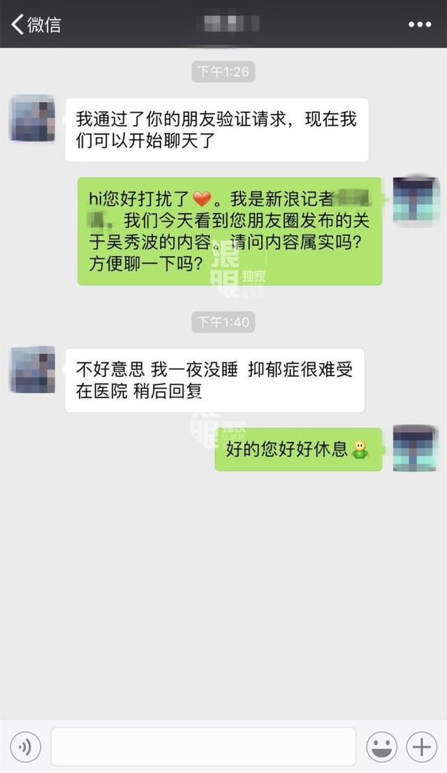 但是还有后续,比如对媒体说自己一夜没睡在医院,抑郁症很难受。而从微博来看抑郁症又是因为从去年下半年开始便遭受到张芷溪不断的信息"骚扰",还一度打电话约她见面。说自己因不堪其扰已患抑郁症。