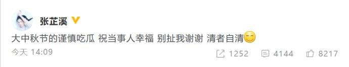 去年在《军师联盟》中饰演了曹丕的妻子甄宓而走红的张芷溪,在事件爆出一个小时后迅速作出了回应说:清者自清,别扯上我。