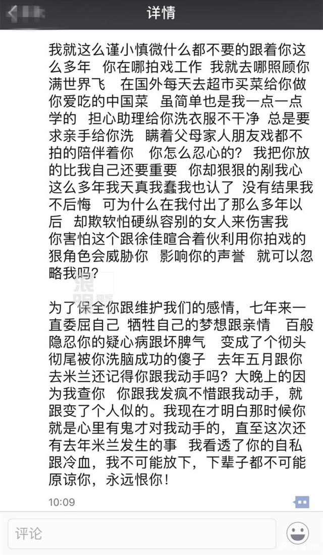 6、陈昱霖自称被吴秀波用"佛经"洗脑,去年五月在米兰,吴秀波还动手打过她。