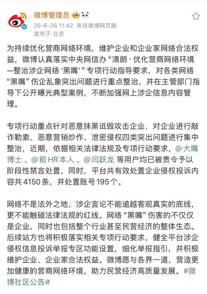 网络黑嘴等清朗行动,肯定是有用(毕竟删除+封禁)。但“大嘴博士”闭嘴了,巨子的“危机”,解除了吗?