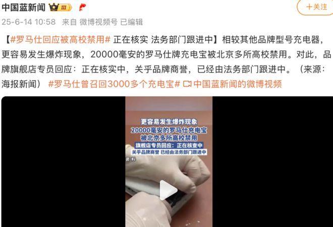 比如,罗马仕,一开始被爆出被北京21所高校发通知,立刻停用罗马仕20000毫安充电宝,因为有学生凌晨充电差点引发火灾。