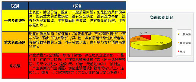 根据对消费者利益的影响程度(注意是以消费者立场为判断依据,而不是以企业主观立场来判断)将危机分为“情节甚微”、“情节轻微”、“情节严重”、“情节恶劣”四个等级,分别代表可能对企业产生影响的严重程度。