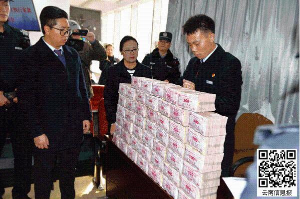 1月2日,昆明市盘龙区人民法院迎来新年后的“开门红”,2019年涉民生执行案款发放会在新闻发布厅举行,当场以现金发放和汇款的形式兑现了53起执行案件的案款共3969万元,其中现金为500万元。最高一笔执行案款近650万元,最少一笔仅为215.17元。