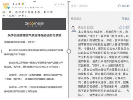 引爆社会舆论的推文《阿里P7员工得白血病身故,生前租了自如甲醛房》发布于8月31晚23点36分。但是,在爆文出现之前的凌晨3点,自如官方微博突然发表声明《关于自如房源空气质量环保的说明与承诺》,宣布可以为租户提供检测以及下架包括上海在内的全国九城全部首次出租房源,待CMA认证机构检验合格后再行上架。此条声明发布时间和发布内容符合危机公关承担责任原则和速度第一原则。