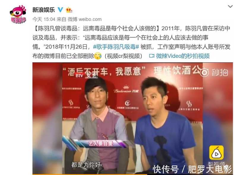 从《最美》、《彩虹》到《翅膀》,歌词剑锋所指,当然是吸毒的陈羽凡。而更神奇的操作是:在公安发出微博之后,陈羽凡个人和其公司的两条微博被删除了。