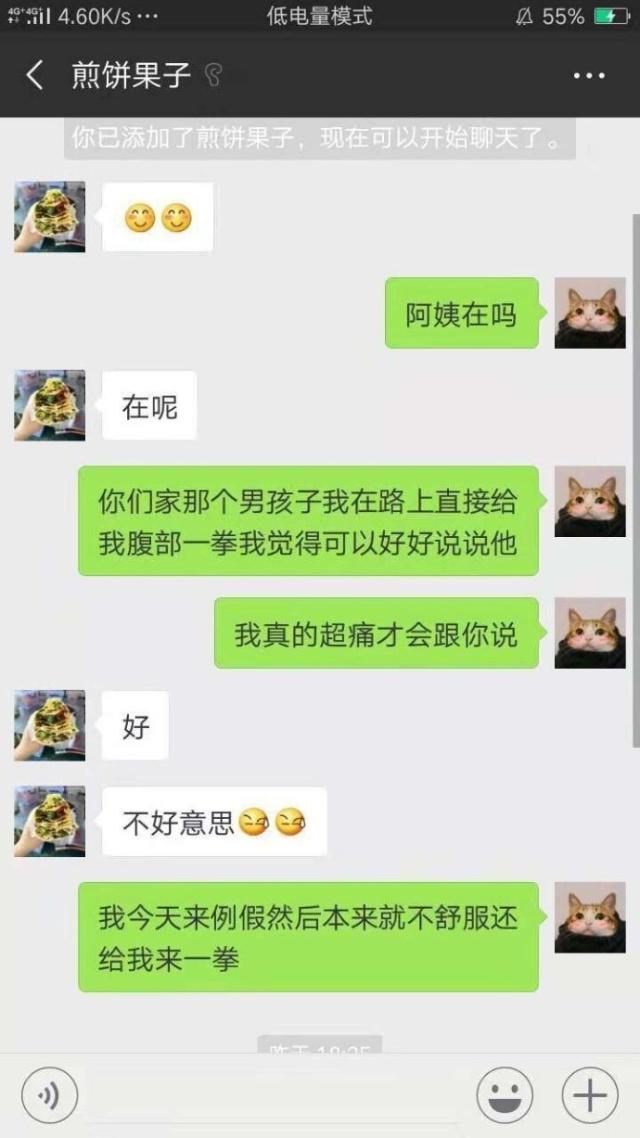 阿姨知道自家孩子打了人以后,没过多大一会就发来一张孩子痛哭流涕的照片,告诉女生说已经教训过孩子了,并再一次道歉,还邀请女生来食堂吃饭,阿姨请客的那种!女生也是感觉有点猝不及防,这危机公关来的有点太过于迅速了,刚说完没多大一会,阿姨就给自己熊孩子安排了一个明白,这效率,这成本,这操作,以后煎饼果子不买你们家的都感觉过意不去了!