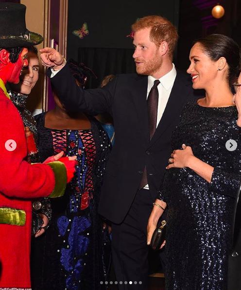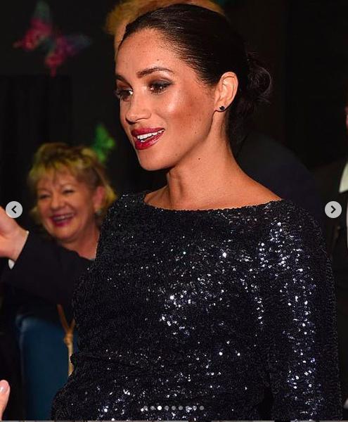 这身不得了,加上重手笔的妆容和特别梳理好的头发,简直入选梅根进王室后十大最出众着装了,金碧辉煌,金光灿灿。