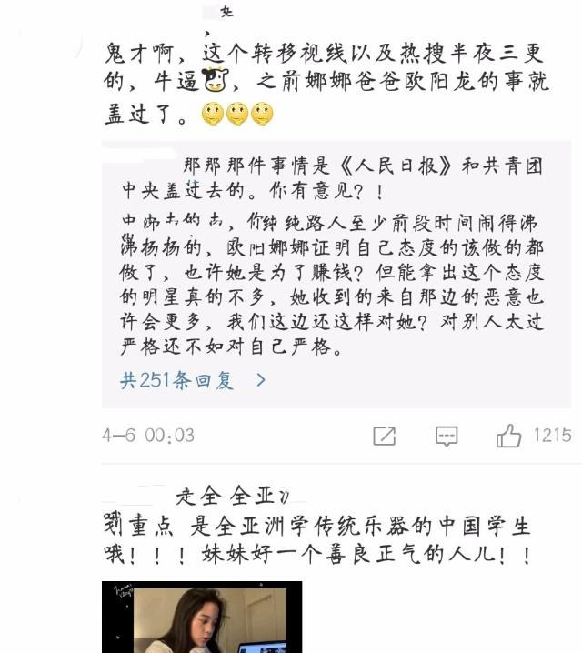 不过还好杨天真的公关团队很OK,首先欧阳娜娜在各大社交帐号上直接明确的表明态度,自己是中国人!然后其父也发文澄清,为女儿证明,在这一事件上欧阳娜娜很快就占了上风,在整个过程中还增加了她的曝光度和正面宣传。所以这次设立伯克利奖学金的行为也不得不让部分网友多想,质疑欧阳娜娜是在为自身洗白,建立良好的社会形象,真爱粉怒怼:你设一个试试!