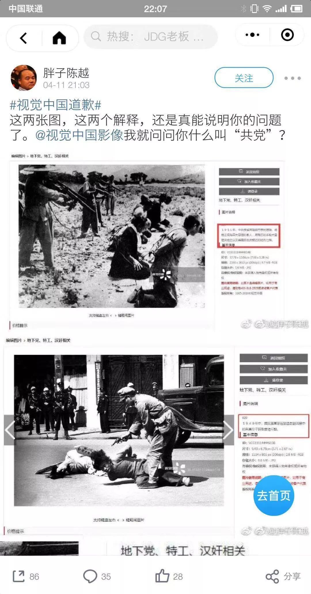 事态一发不可收拾,爱跟热点且积怨已久的自媒体们,开始轮番的“攻击”,官方媒体也开始定调。最关键的是,视觉中国平台上,更多的违规照片问题开始被喜欢“挖坟”的网友们开始爆出。@视觉中国 在几个小时后回应,并首次道歉。