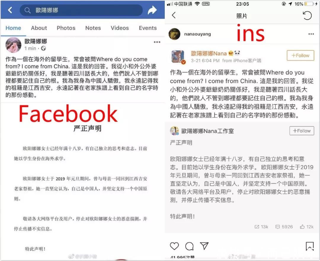 还应网友要求,把微博声明原封不动发到了ins和Facebook,,内网外网彻底表明立场,