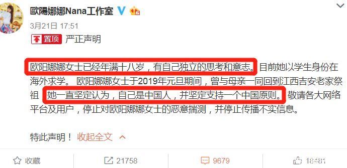 所以工作室迅速发声明,强调欧阳娜娜已经18岁,有自己的思想意志,暗示跟家里这群带不动的青铜做切割,