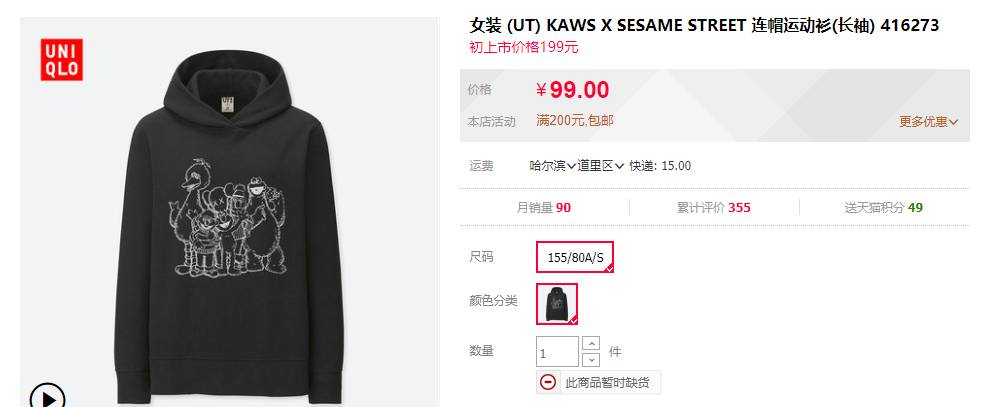 6月4日有网友曝出,原价99元的Kaws系列T恤已经被炒至299元、499元,甚至翻了8倍达到799元。