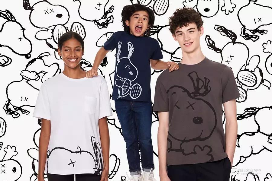 2017 年,KAWS x 优衣库 x《PEANUTS》3 方联名合作,主要是把史努比眼睛变成 XX ……而且不仅有春夏联名款,还有秋冬联名。