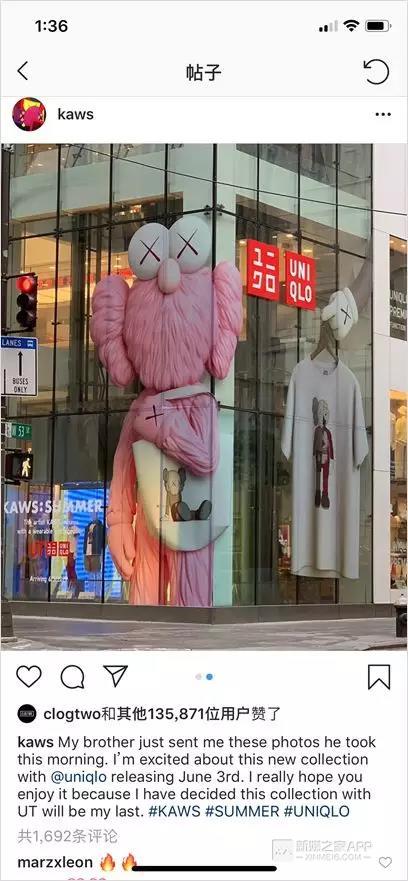 而 KAWS ,本来是一个相对小众(相比优衣库)的 IP,通过与优衣库的合作,实现了品牌曝光,品牌的大众辨识度瞬间提高了很多。