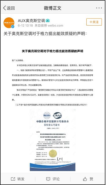 1、事件本身,奥克斯指责格力恶意引导舆论。