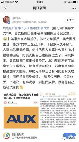 奥克斯“民族大义牌”,搬石头砸脚第二波12日出现,媒体扒出来#奥克斯董事长夫妇移民加拿大#,舆论再次哗然,丢1分。