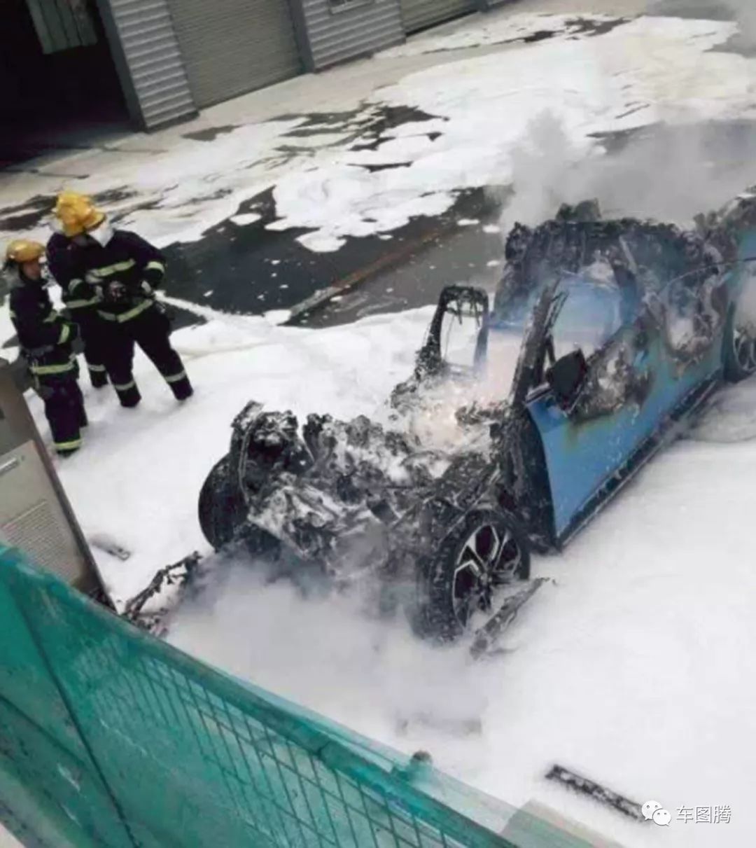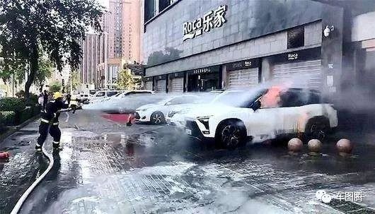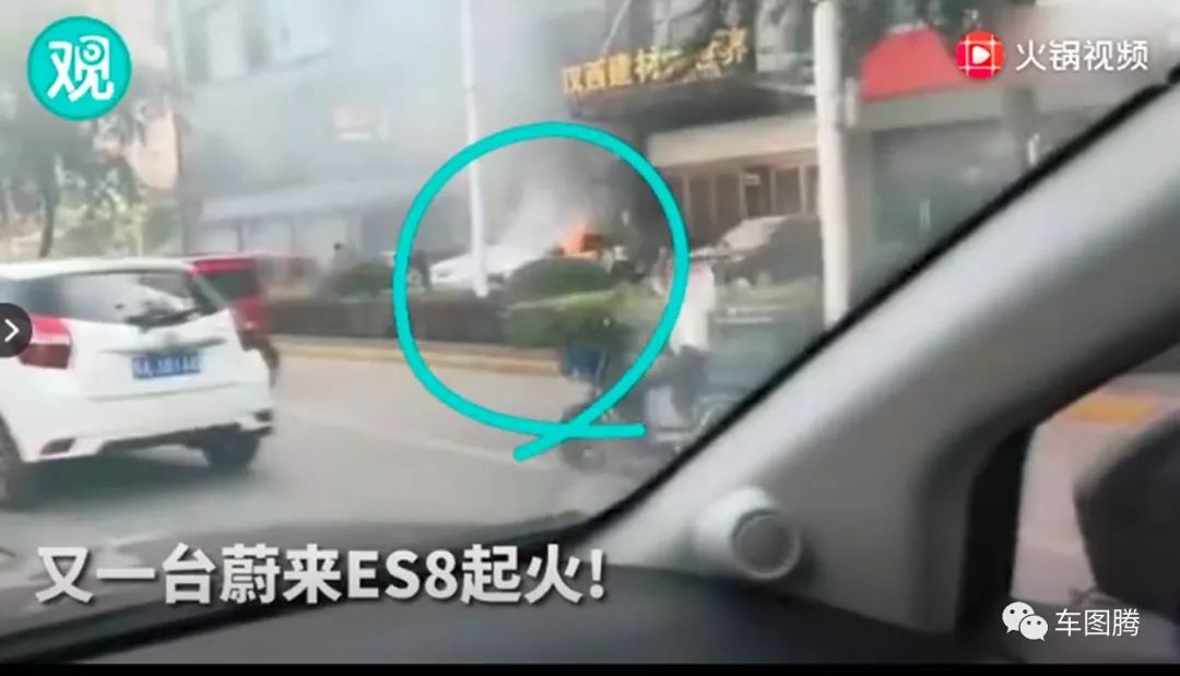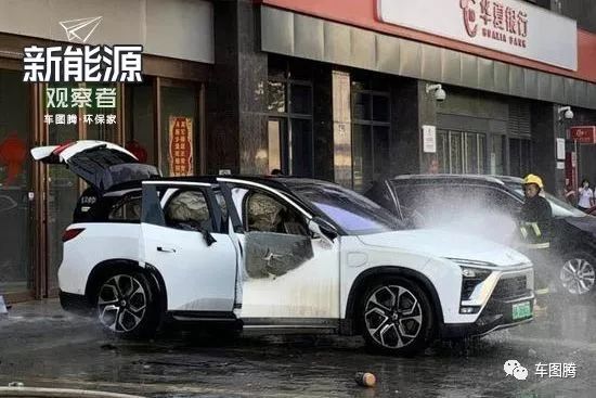 (6月14日,武汉,一台蔚来ES8冒烟起火。)
