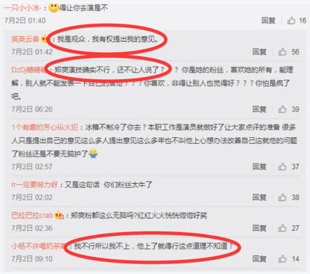 然而就在网友评价这部电视剧以及郑爽演技的时候,粉丝就如同装了雷达一样迅速跑到第一现场,一来就指责网友没看剧本身,而当观众表明自己有看的时候,他们就开始那一套言论:你行你上啊?你会演吗?有什么资格说郑爽?