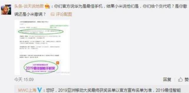 有那么一会儿,我感到很失落。这是亚洲移动的官方失败,还是2019年有两个最佳智能手机奖?一些网友不解地分别向MWC官员和小米高管提问。作为回应,MWC官方的回应是基于最终公布的获奖名单,而小米官方没有回复。