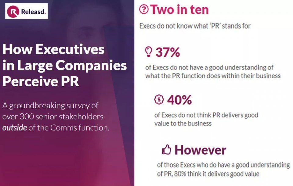 近日, Releasd 发布的一项针对超过300名非公关传播行业的公司高管的调查显示,20%的人不知道”Public Relations”代表的是什么,40%的高管不认为公关为他们的业务带来了良好的价值。
