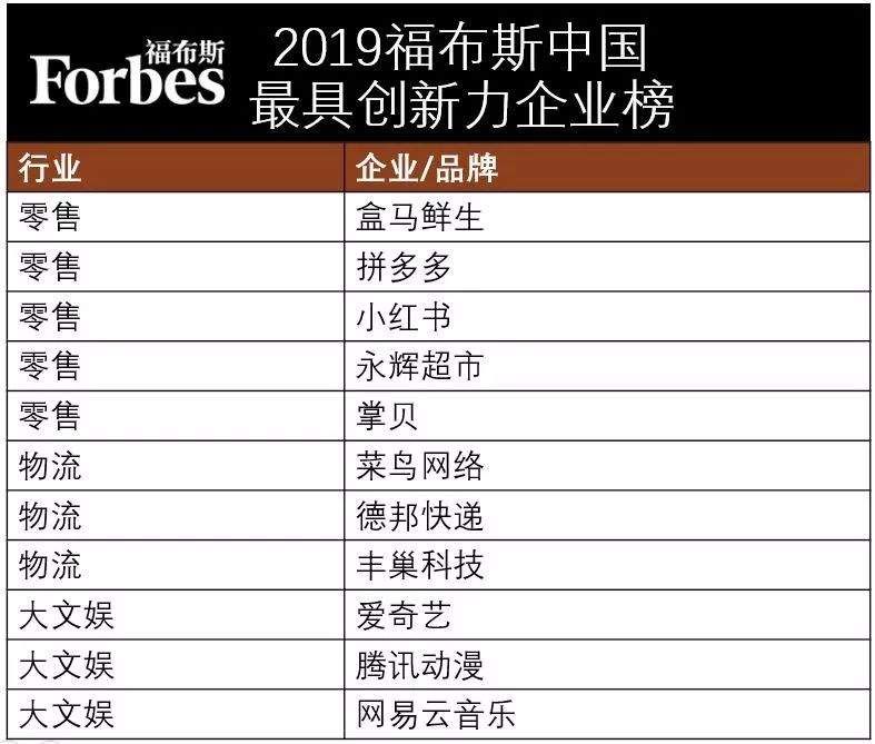 2019福布斯中国最具创新力企业榜发布