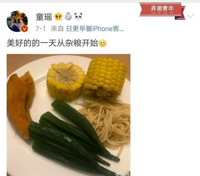 不间断地,她会在微博上晒出自己每日的早餐,并配字表示对新的一天的期待。