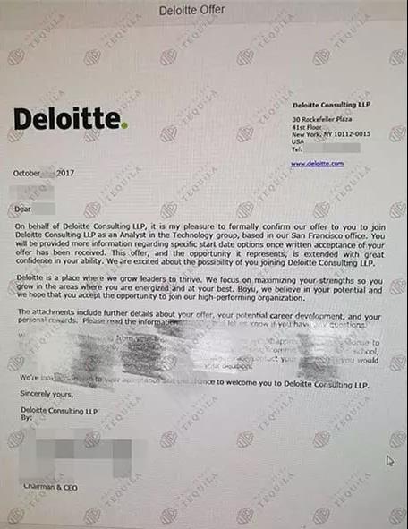 一边实习,我也更努力地networking,靠着之前Corporate Strategy的实习经历,在大四申请季中拿到了不少面试。最后拿到了Deloitte Consulting San Francisco的全职offer.