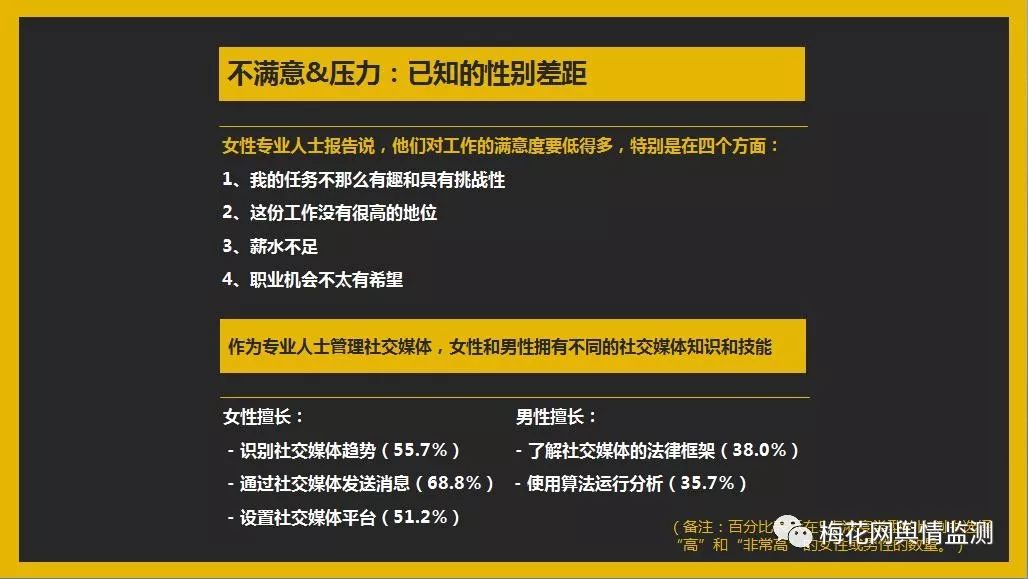 虽然近四分之三的公关人士对自己的工作表示满意,但性别差距很大。与男性相比,女性(60.8%)报告的工作满意度要低得多(70.2%)。