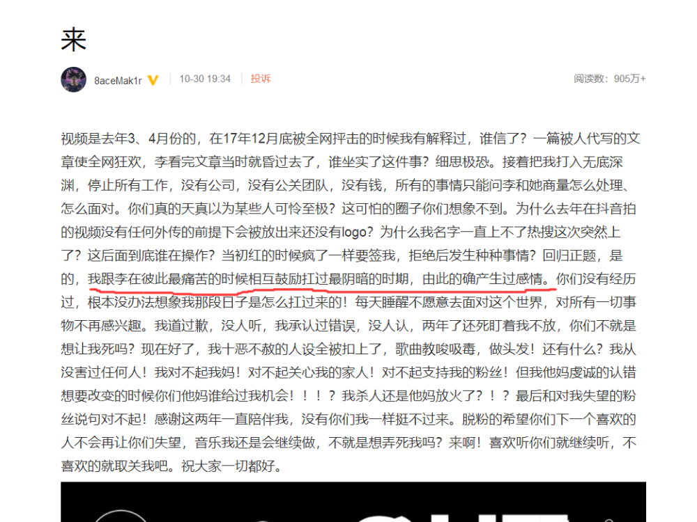 同时PGone也明确表示到这个圈子很可怕,并暗讽自己被有些人针对了。文中后半段他还大肆发泄了一番,称自己认错没人给机会。但他表示自己没害过任何人,并向陪伴他的粉丝道歉。