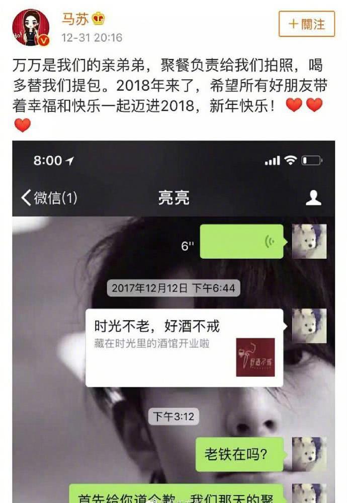 虽然只有短短一句话,但这6个字是真狠啊。很明显马苏也看到了今天网曝的李小璐和PGone的视频,还记得2年前那场风波,马苏还曾李小璐向贾乃亮解释,称“万万是我们的亲弟弟,聚餐负责给我们拍照,喝多替我们提包”,还晒出了向贾乃亮道歉的截图。