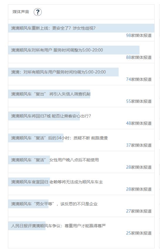 滴滴顺风车服务时间设置被指女性歧视——公关指数:66.5分