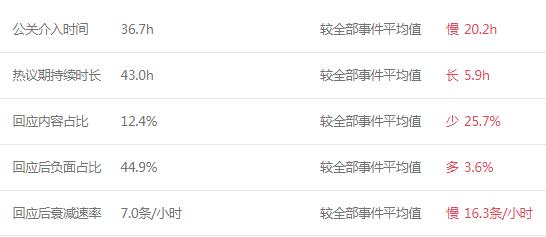 影响力如此之广,网易却在24日20时才作出回应称:从集团层面安排了专项小组进行了解核实。36.7个小时后,公关介入,较全部事件平均值慢了20.2小时。除了公关时间慢,回应内容占比、回应后负面占比、回应后衰减速率均不如平均值。