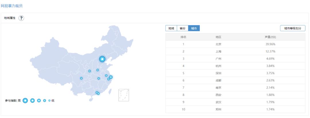 从地域来看,北上广深杭州等大型互联网公司聚集地的网友最为关注此事。
