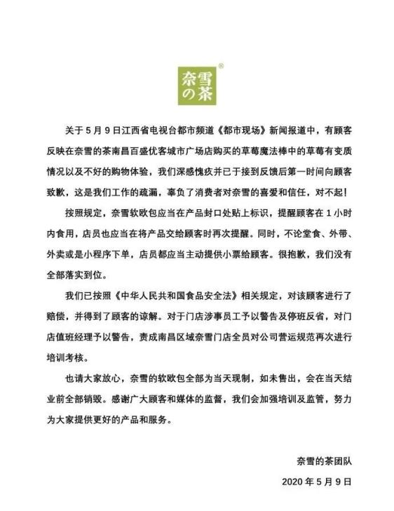 知名连锁饮品奈雪的茶出事了!危机公关如此回应,你信服吗?