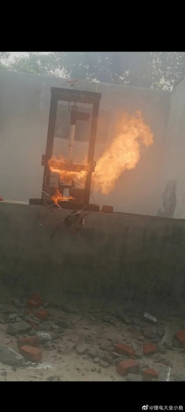 但问题是这个视频模糊不清,根本没法看清实验的全貌,这就好比通过碰撞来检测车辆的安全性,但你发了个模糊的视频,车辆根本没接触到障碍物,就宣称车辆安全性全球第一,这种皇帝的新装,肯定忽悠不了这届网友。关注动力电池的网友“小鱼锂电”在宁德时代的两次试验之前,就自费购买了宁德时代 5 系及 8 系三元锂电池,按GB/T 31485标准的要求进行针刺测试。