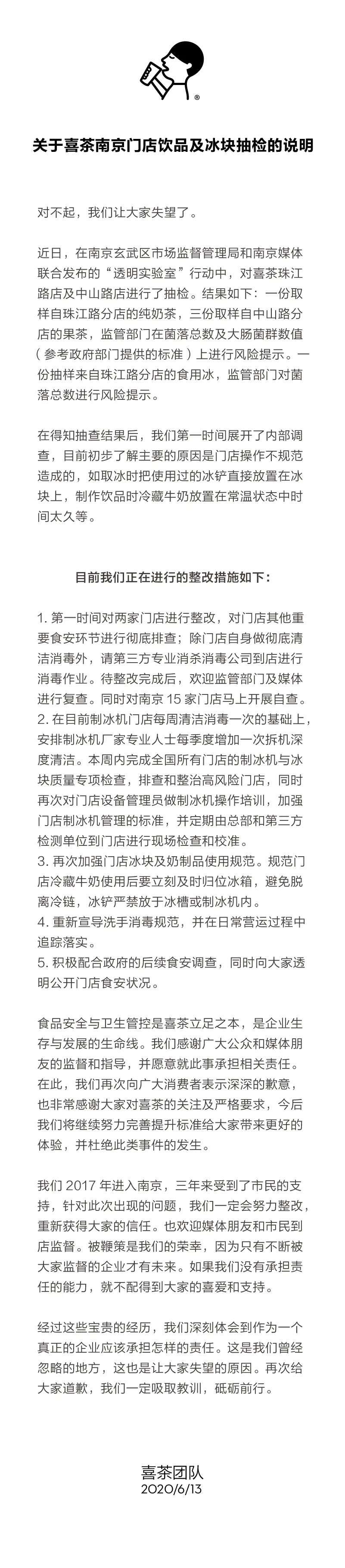 喜茶在官方微信发文