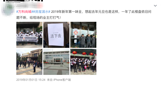 至于没有回应的万科尚城,简单搜了一下微博,业主们闹也闹了,守卫大门的强硬保安,可能就代表了。