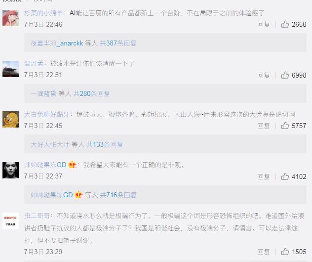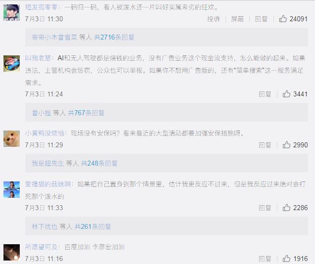 在百度第一次回应时,微博评论证明积极的居多,大多数持同情李彦宏,反对泼水人的态度,当然也是因为李彦宏在遭遇泼水时冷静有风度的反应获得不少肯定。