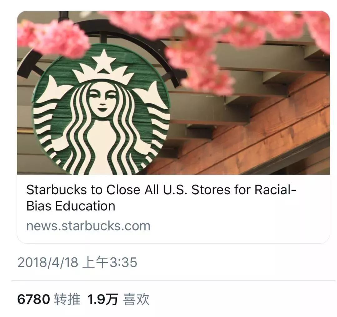 之后,星巴克紧接着宣布:“将在下个月关闭美国境内的8000家门店,对旗下17.5万名员工进行一下午的‘反种族歧视培训’”。