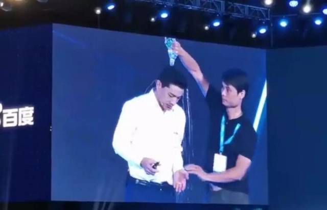 7月3日,2019百度AI开发者大会如期举行。不过,今年火爆的开发者大会现场,发生了尴尬的一幕。百度公司创始人李彦宏上台,在介绍完小度“双全工无唤醒功能”后,正在解读百度自动泊车时,一位不明人士走到台上,来到李彦宏身边,将一瓶矿泉水直直地从李彦宏头顶倒下。李彦宏瞬间完全湿身,此时大会刚刚举行了10分钟左右。“What’s your problem?”李彦宏在被泼水后飙出了一句英文。不过,见过各种大场面的李彦宏还是迅速稳住了自己。之后大会继续。李彦宏一边用餐巾纸擦去面上的水渍,一边又说了一句,“就像人工智能到来的路上,总会遇到一些困难”。此后,李彦宏一直穿着湿透的衣服,演讲了超过35分钟。